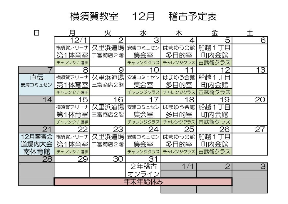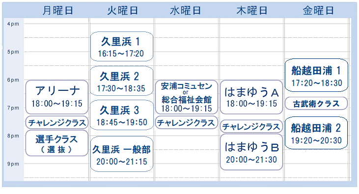 17:15〜18:25 通常稽古18:40〜19:10 チャレンジC 19:20〜20:30 通常稽古2